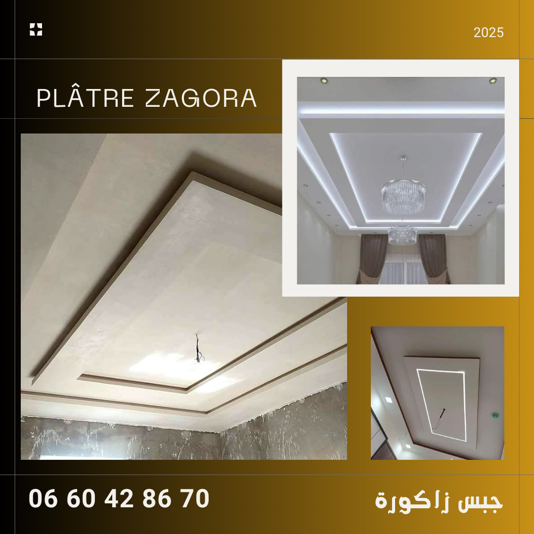 ديكورات الجبس زاكورة هو واحد من أبرز المتميزين في مجال أعمال الجبس في مدينة الرباط. يمتاز بمهارات عالية وخبرة طويلة في تقديم الأفضل في مجال أعمال الجبس. بفضل تفانيه في العمل و خدمة الزبناء، أصبح "ديكورات الجبس زاكورة" مرجعًا موثوقًا في مجال أعمال الجبس في المدينة، ويحرص دائمًا على تقديم الأفضل حسب احتياجات كل زبون. إذا كنت تبحث عن الجودة و الإتقان، فإن "ديكورات الجبس زاكورة" هو الخيار الأمثل ، يمكنك الاعتماد على "ديكورات الجبس زاكورة" لتلبية توقعاتك و طلباتك بجودة عالية. احصل على تجربة فريدة ومميزة مع ديكورات الجبس زاكورة الذي يولي اهتمامًا بالغًا بالتفاصيل ويسعى دائمًا لتحقيق الأفضل. تواصلوا معنا عبر الهاتف أو الواتساب و لا تنسوا ترك تقييم إيجابي.
